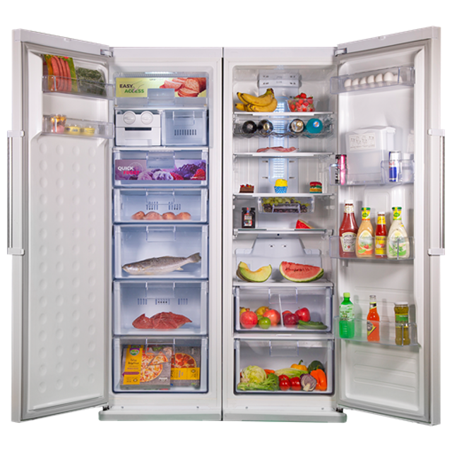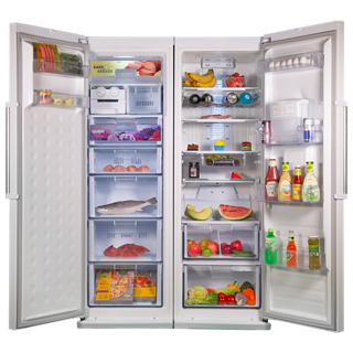 یخجال و فریزر بدون برفک با سیستم گردش هوای داخلی همراه با کنترل پنل لمسی عملکرد ecoبرای مصرف بهینه انرژی کلاس بهره وری انرژیAُ تصفیه بهداشت اب دارای قفل کودک و یخساز دستی